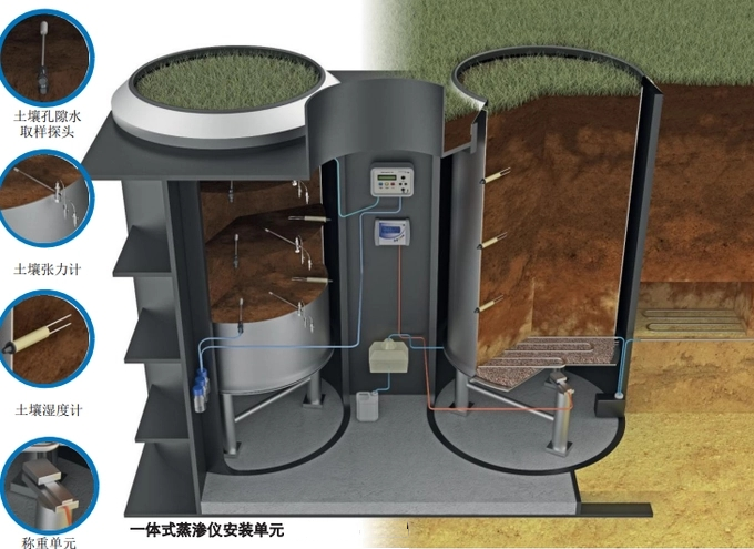 1. 一體式土壤蒸滲儀是由蒸滲儀柱體、稱重系統(tǒng)、數(shù)據(jù)采集系統(tǒng)、土壤水文測量單元、抽樣系統(tǒng)及系統(tǒng)維護等構成,該系統(tǒng)都集中在一個緊湊、堅固且環(huán)保的蒸滲儀室內,便于安裝運輸;